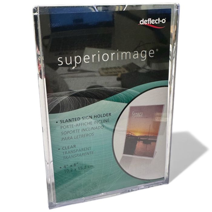 Sign holder, A6 tall, angled, acrylic, 10 x 15 cm