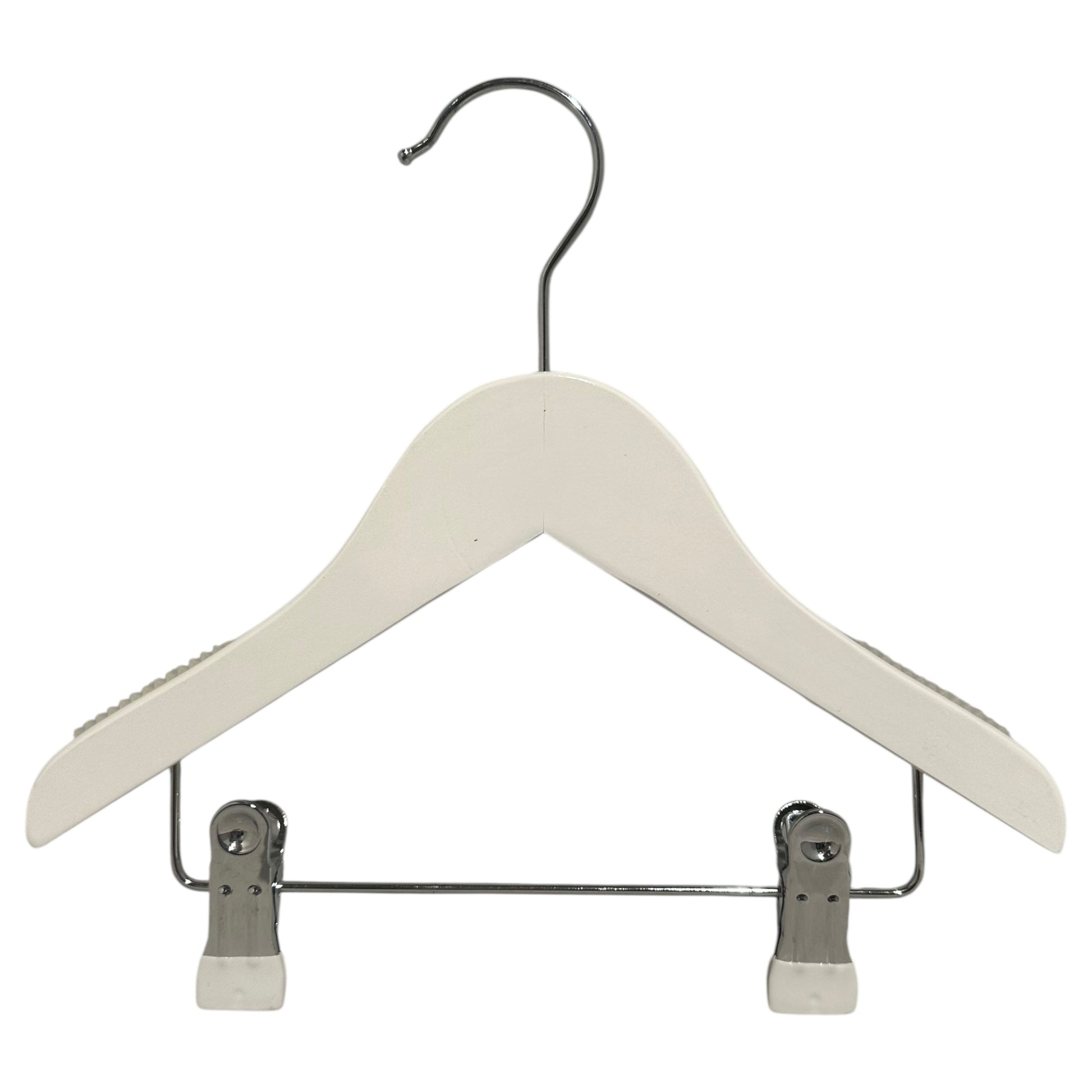 Wooden hanger, solid, flat, baby, with clamp, white, 27 cm
