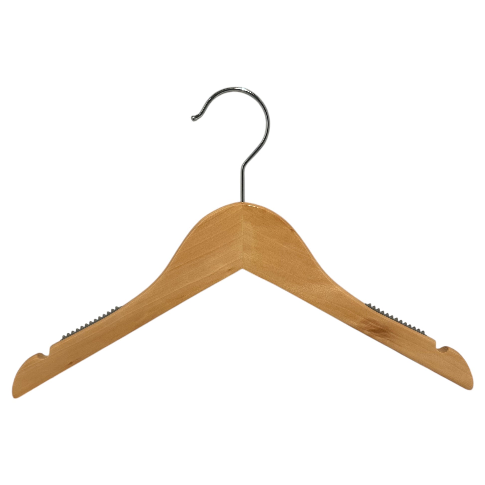 Wooden hanger, solid, flat, junior, with notch and without bar, natural, 32 cm