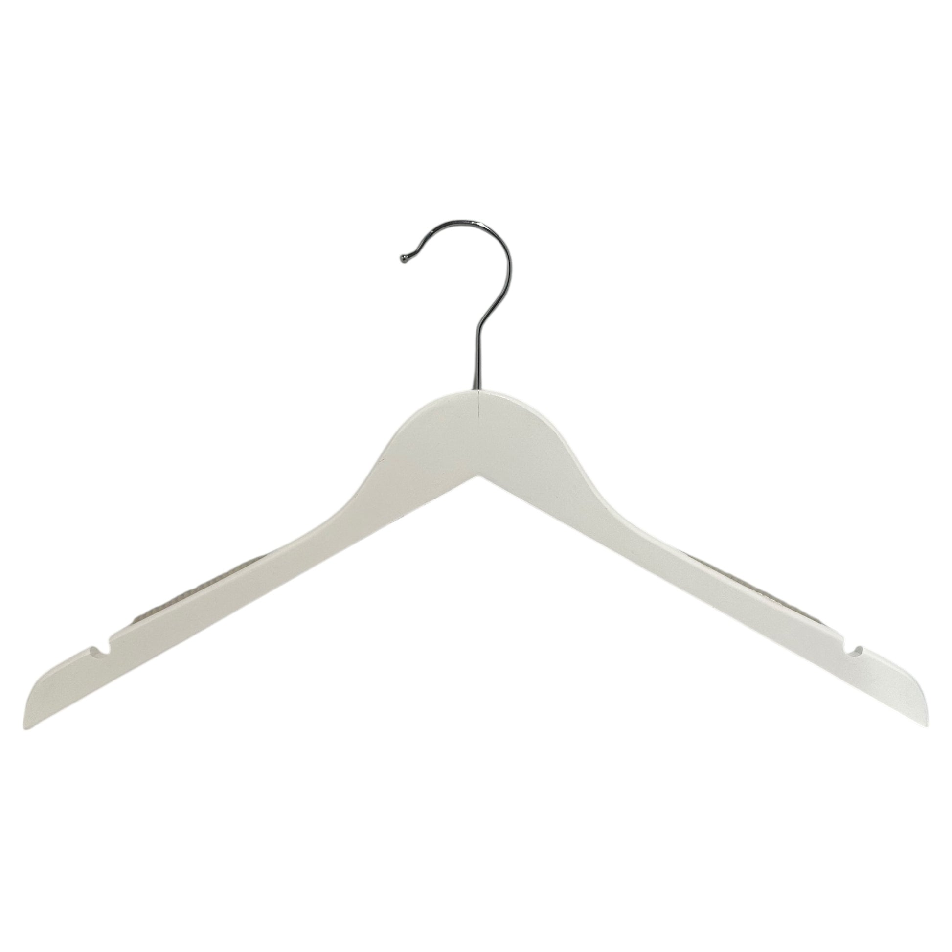 Wooden hanger, solid, flat, adult, with rubber and notch, without bar, white, 12 mm thick, 45 cm