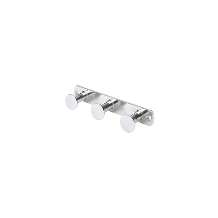 Frahæng med 3 ophæng til brug i showrum og prøverum. De kan også bruges til præsentation eller bag disken. Frahænget sættes op med 2 skruer og evt. raw plugs afhængigt af væg type. Skruer og raw plugs medfølger ikke. Mål: B 19,5 x D 4,5 x H 3 cm. Krom.