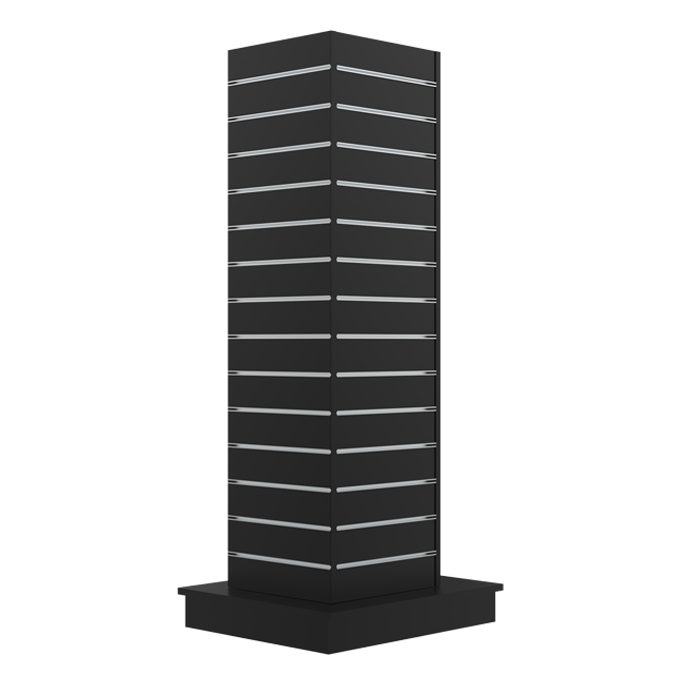 Gondola, 4-sided, black, W61 x D61 x H170 cm. Groove spacing 10 cm. Incl. wheels