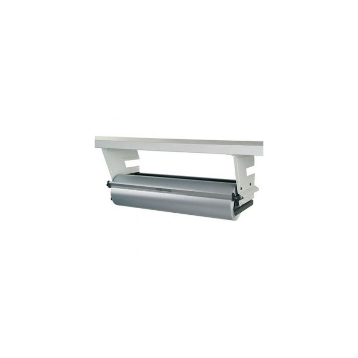 Paper cutter for 50 cm roll. Can stand on a table or be hung under the counter. The length of the paper cutter is 57 cm. The paper cutter is designed for a 50 cm paper roll, max Ø24 cm and a maximum weight of 20 kg. Color: Gray