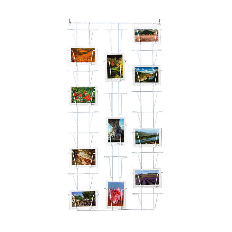 | Postcard holder in white metal for wall mounting. The frame measures 50 x 100 cm. It can hold up to 24 cards: 18 landscape + 6 portrait. | Regular price
