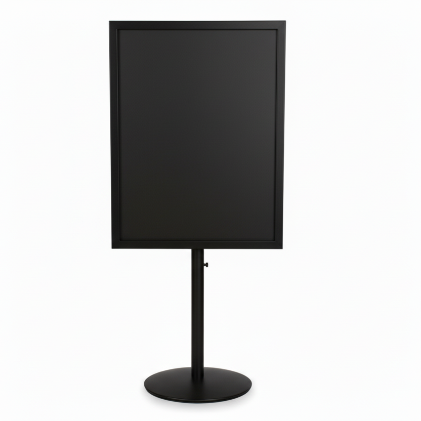 | Our classic metal menu holder on a solid round metal base. Our menu or sign holder is suitable for any type of signage. Whether it's a laminated sign, a sign with plastic pockets, paper, or cardboard, it can be inserted into our menu holder. The base has a fixed height of 19 cm, but it can be raised by up to 15 cm with the purchase of an extender. We also recommend purchasing plastic pockets to protect the paper sign from wear and dirt. The galvanized model is especially suitable for outdoor sales counters, as it withstands various weather conditions. | Regular price